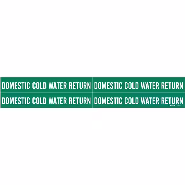 Brady® | Bulk | Obsolete | Pre-Printed | English | General | Water Fluids | Text Only | Domestic Cold Water Return | No Symbol | Green | White | 7.000" (177.80mm) | 1.125" (28.58mm) | - | Outdoor | Vinyl | Adhesive | 0.750" (19.05mm) 3/4" | 2.375" (60.33mm) | Rectangle | - |