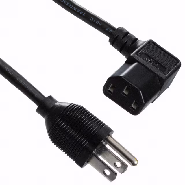 - | Bulk | Active | Male Pins (Blades) to Female Sockets (Slots) | NEMA 5-15P | IEC 320-C13, Right Angle | 3 | SVT | 18 AWG | Unshielded | 6.56' (2.00m) | UL | United States | Black | 125V | 10A | 60°C | - |
