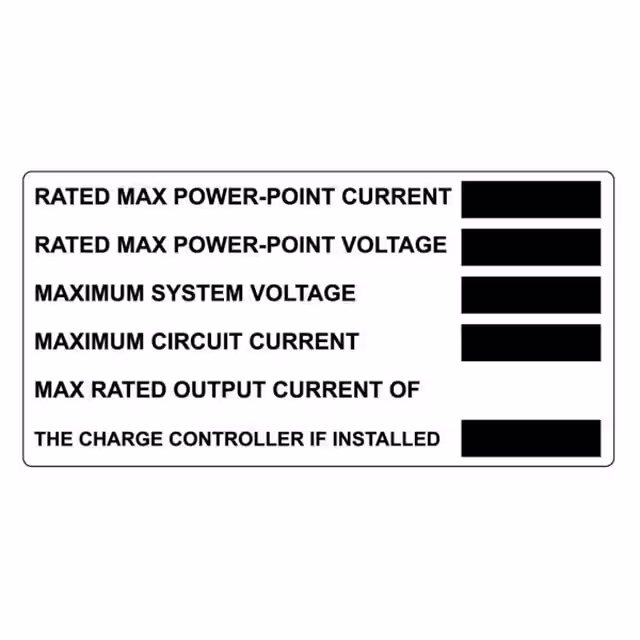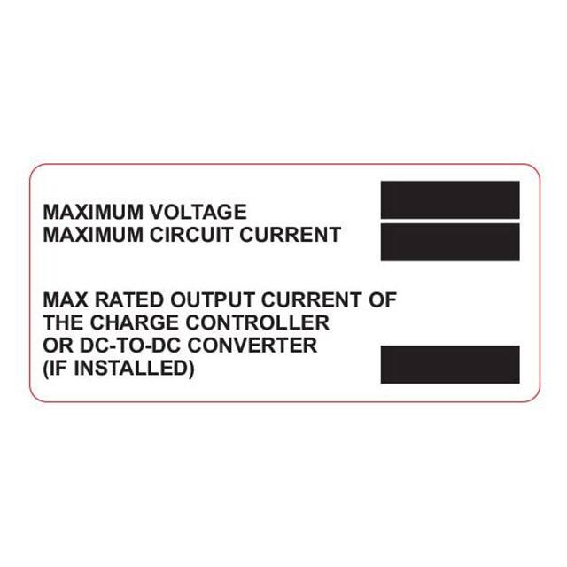 - | Bulk | Obsolete | Black Legend, Orange and White Background | Notice | Aluminum | Nominal Operating AC Voltage. Nominal Operating AC Frequency. Maximum AC Power, Maximum AC Current. Max Overcurrent Device R... | 4.00" L x 2.00" W (101.6mm x 50.8mm) |