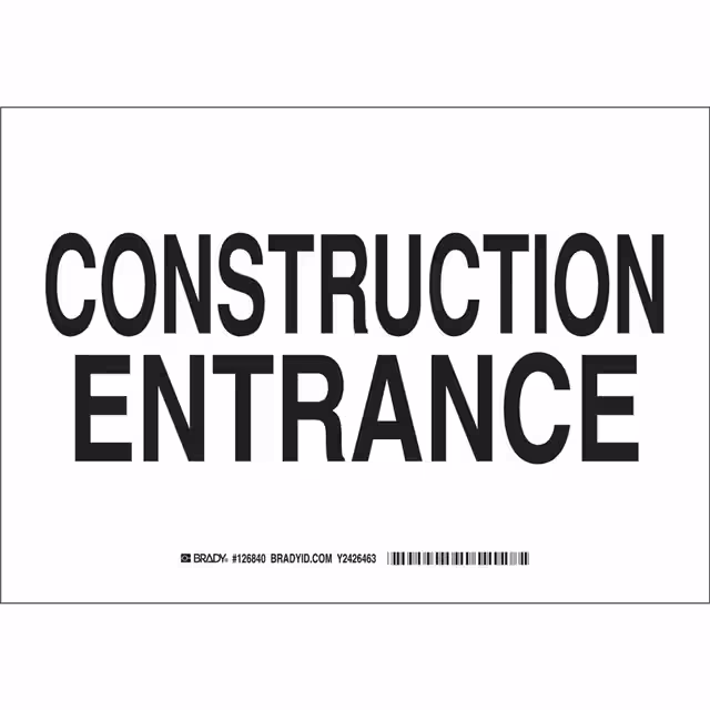 Brady® | Bulk | Active | Black Legend, White Background | Notice | Polyester | Construction Entrance | 10.00" L x 7.00" W (254.0mm x 177.8mm) |
