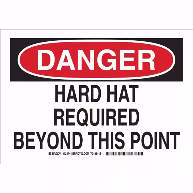 Brady® | Bulk | Active | Black and Red Legend, White Background | Danger | Polyester | Danger. Hard Hat Required Beyond This Point | 10.00" L x 7.00" W (254.0mm x 177.8mm) |