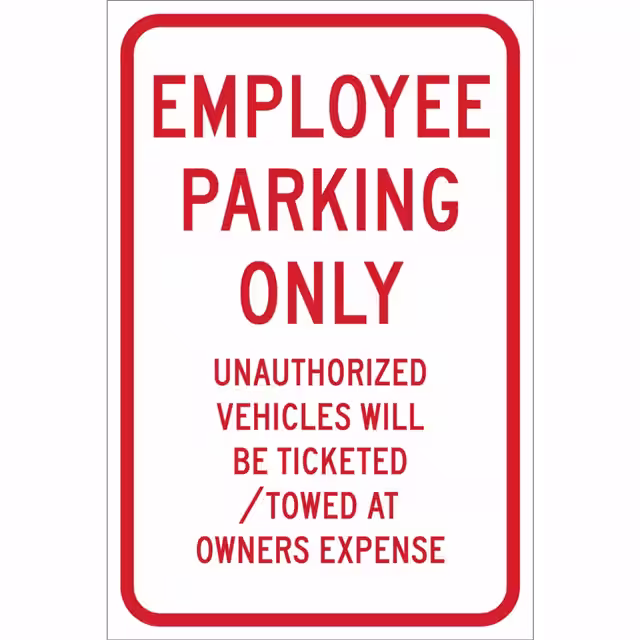 Brady® | Bulk | Active | Red Legend, White Background | - | Aluminum | Employee Parking Only Unauthorized Vehicles Will Be Ticketed/Towed At Owners Expense | 18.00" L x 12.00" W (457.2mm x 304.8mm) |