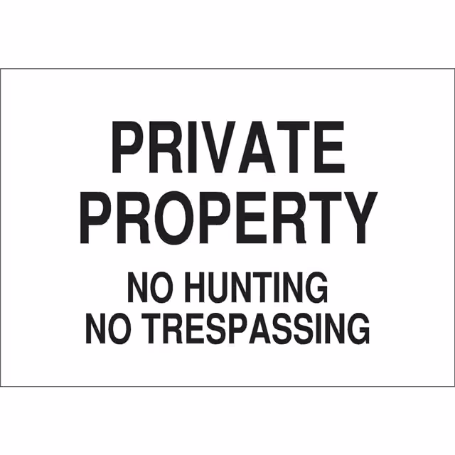 Brady® | Bulk | Active | Black Legend, White Background | Warning | Fiberglass | Private Property. No Hunting No Trespassing | 20.00" L x 14.00" W (508.0mm x 355.6mm) |