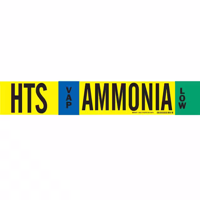 Brady® | Bulk | Active | Black, Blue, Green and Orange Legend, Yellow Background | Warning | Polyester | HTRS Ammonia | 24.00" L x 4.00" W (609.6mm x 101.6mm) |