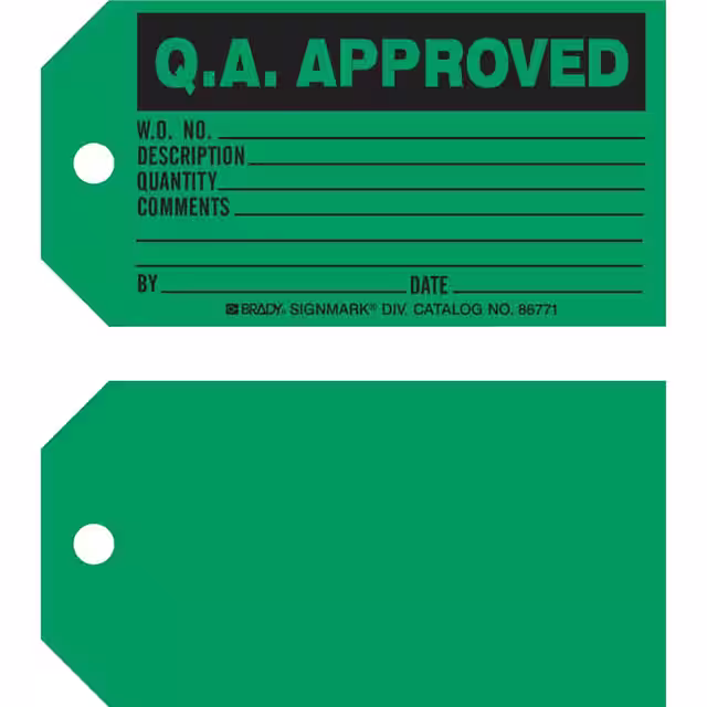 Brady® | Bulk | Active | Black Legend, Green Background | - | Paper | Q.A. Approved. W.O. No. Description. Quantity. Comments. By. Date. | 5.75" L x 3.00" W (146.0mm x 76.2mm) |
