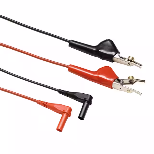 - | Bulk | Active | Non Stackable | Banana to Alligator | Banana Plug, Single, Sheathed, Right Angle | Alligator Clip, Insulated, Large | 59.1" (1500.00mm) | DMM Test Leads | 2 Leads, Black and Red | Silicone | - | 30V | CAT I 30V | 10A |
