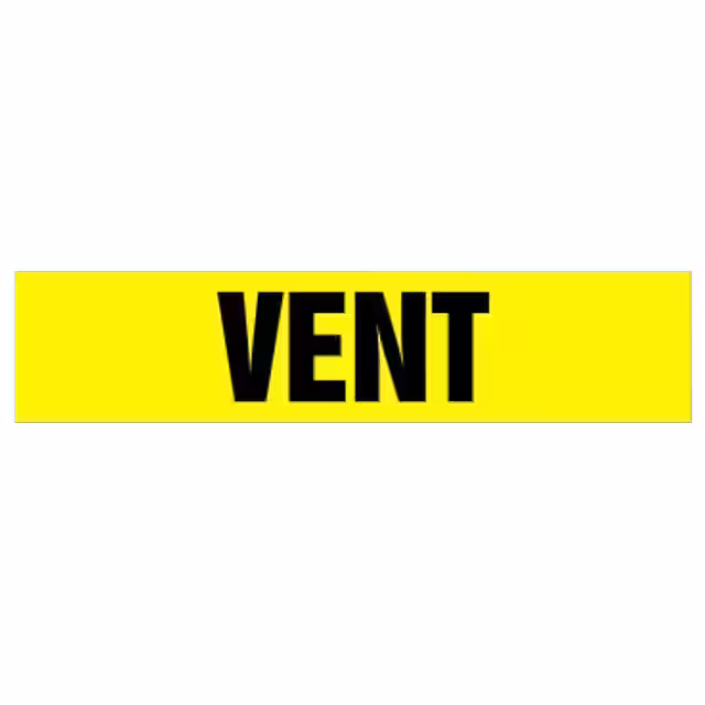 - | Bulk | Obsolete | Pre-Printed | English | Pipe | Flammable Fluids | Text Only | Vent | No Symbol | Yellow | Black | 12.000" (304.80mm) | 2.500" (63.50mm) | - | Indoor/Outdoor | Vinyl | Adhesive | 6.000" (152.40mm) | 2.500" (63.50mm) | Rectangle | - |