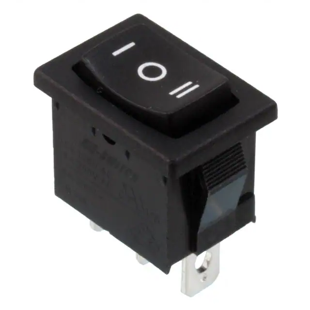 R1966 | Bulk | Active | Panel Mount, Snap-In | SPDT | On-Off-On | 15A (AC) | 125 V | - | Concave (Curved) | Black | Triangular Arrows with O | - | - | Quick Connect - 0.187" (4.7mm) | - | - | Rectangular - 19.40mm x 13.00mm | -30°C ~ 65°C | - |