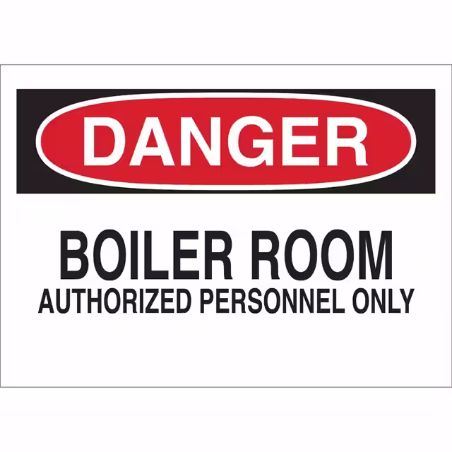 Brady® | Bulk | Active | Black and Red Legend, White Background | Danger | Fiberglass | Danger. Boiler Room Authorized Personnel Only | 14.00" L x 10.00" W (355.6mm x 254.0mm) |